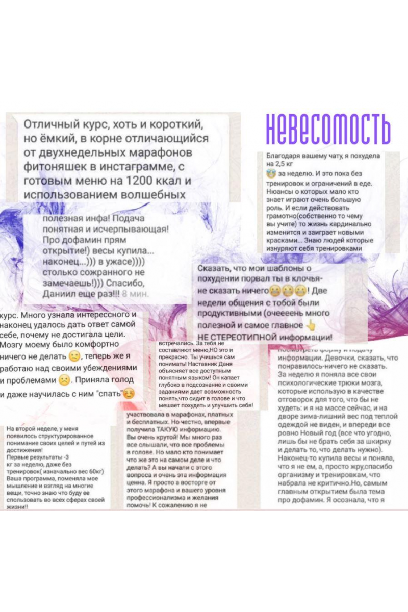 Вы получите 13 видео-лекций, после которых у Вас будет ВСЯ ОСНОВНАЯ ИНФОРМАЦИЯ ПО ПОХУДЕНИЮ, которая есть у самых прогрессивных специалистов по психологии питания и сброса веса на сегодня.