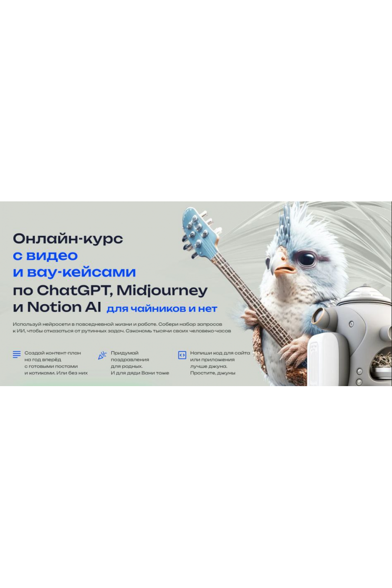 Онлайн-курс с видео и вау-кейсами по ChatGPT, Midjourney и Notion AI для чайников и нет