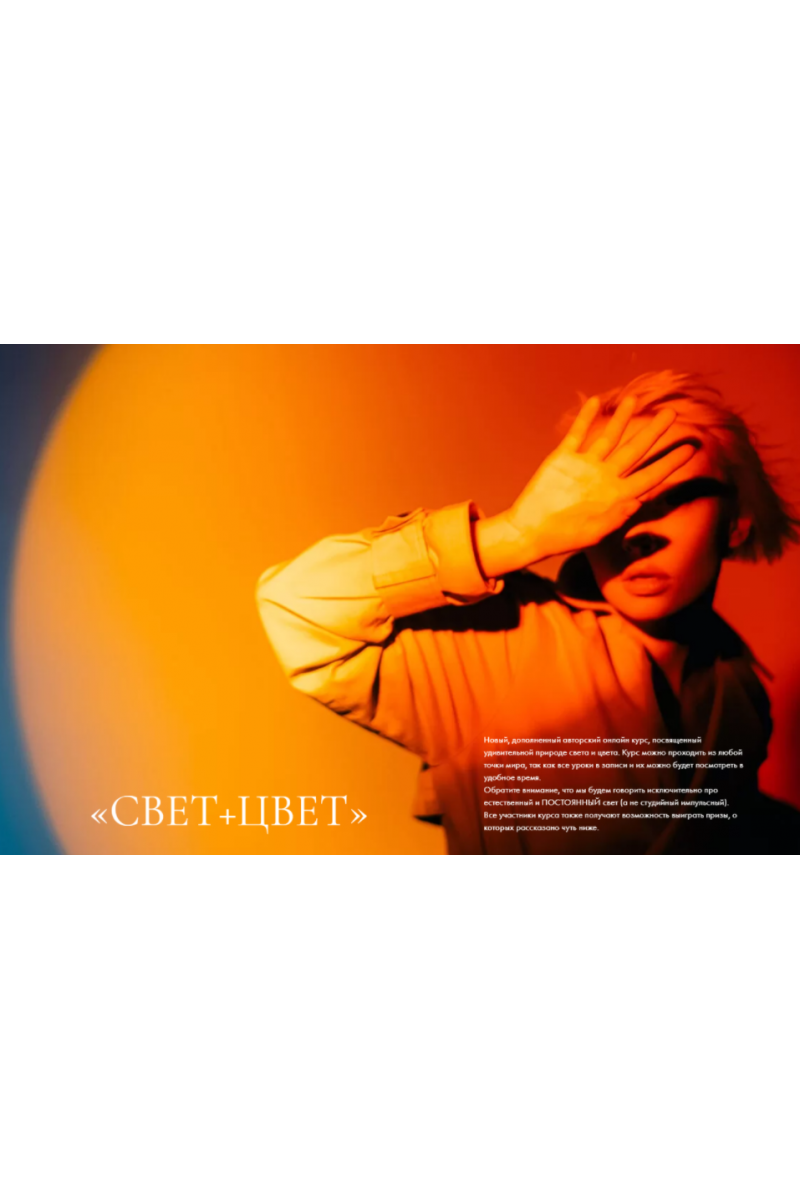 Этот курс создан для того, чтобы дать основы в понимании работы со светом и цветом, но при этом наделить вас свободой экспериментировать и не упираться в какие-то "правила" или "законы". Мы постараемся максимально широко рассмотреть все возможности этих двух инструментов и их влияние в том или ином контексте на зрителя, чтобы вы смогли начать пользоваться этим в своих работах.