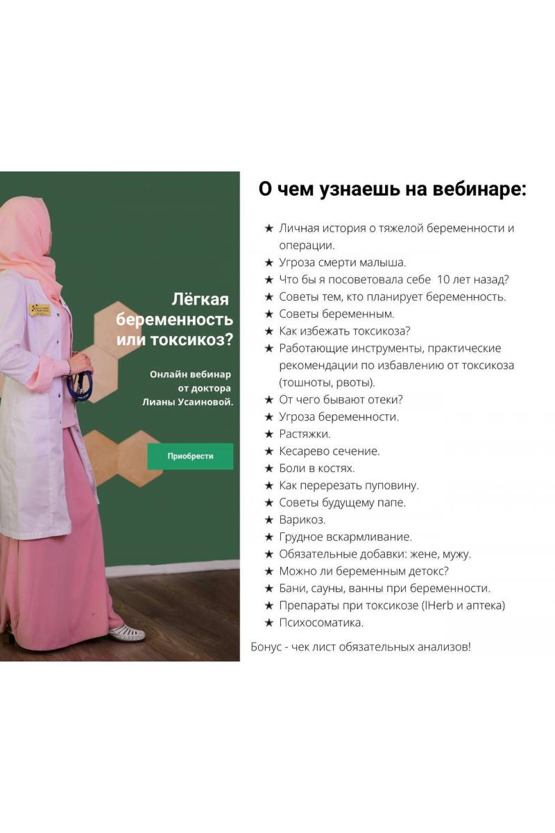 Этот вебинар для тебя, если:Планируешь беременность.Уже ждете малыша.Хочешь помочь сестре, подруге, маме.О чем узнаешь на вебинаре:Личная история о тяжелой беременности и операции.Угроза смерти малыша.Что бы я посоветовала себе 10 лет назад?Советы тем, кто планирует беременность.Советы беременным.Как избежать токсикоза?Работающие инструменты, практические рекомендации по избавлению от токсикоза (тошноты,рвоты).От чего бывают отеки?Бонус - чек лист обязательных анализов!