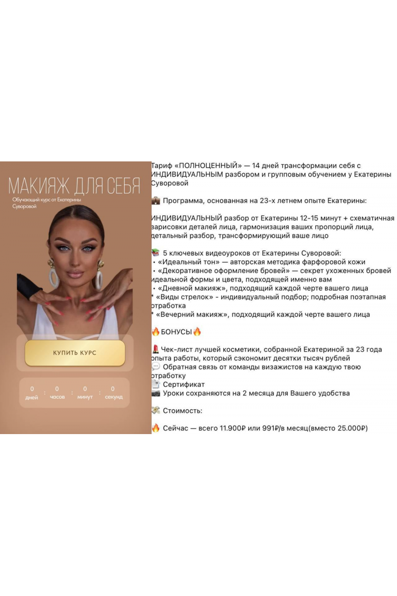 Тариф «ПОЛНОЦЕННЫЙ» - 14 дней трансформации себя с ИНДИВИДУАЛЬНЫМ разбором и групповым обучением у Екатерины Суворовой