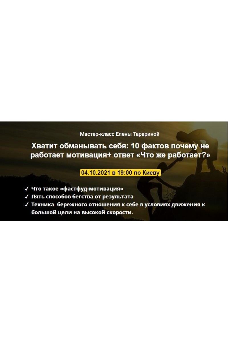 Мастер-класс Хватит обманывать себя: 10 фактов почему не работает мотивация+ ответ «Что же работает?». Елена Тарарина