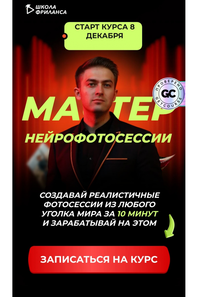 На обучении вы узнаете все тонкости и нюасы, чтобы создавать максимально реалистичные фотографии!