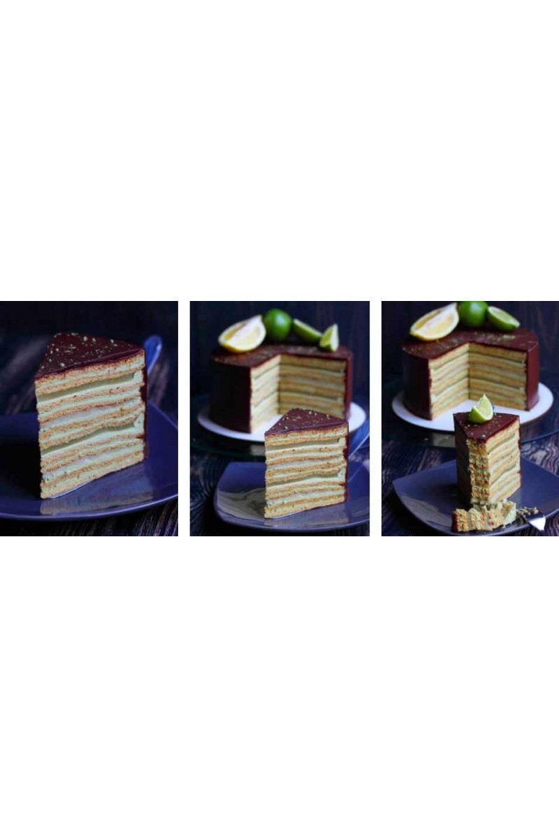 Нежные коржи с мягким медовым вкусом, сливочный крем с легкой горчинкой чая матча, которые прекрасно дополняются миндальной сладостью марципана и идеально гармонируют с яркой экзотической кислинкой кули юзу. Благородные нотки ганаша на темном шоколаде, который обволакивает торт, прекрасно завершают этот ансамбль идеально сбалансированного необычного вкуса.