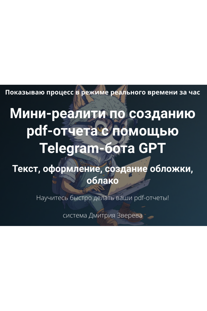 С помощью мини-реалити вы научитесь создавать ваши pdf-отчеты быстро и без технических сложностей - используя простые доступные инструменты и "рычаг-усилитель" в виде искусственного интеллекта прямо через Телеграм.