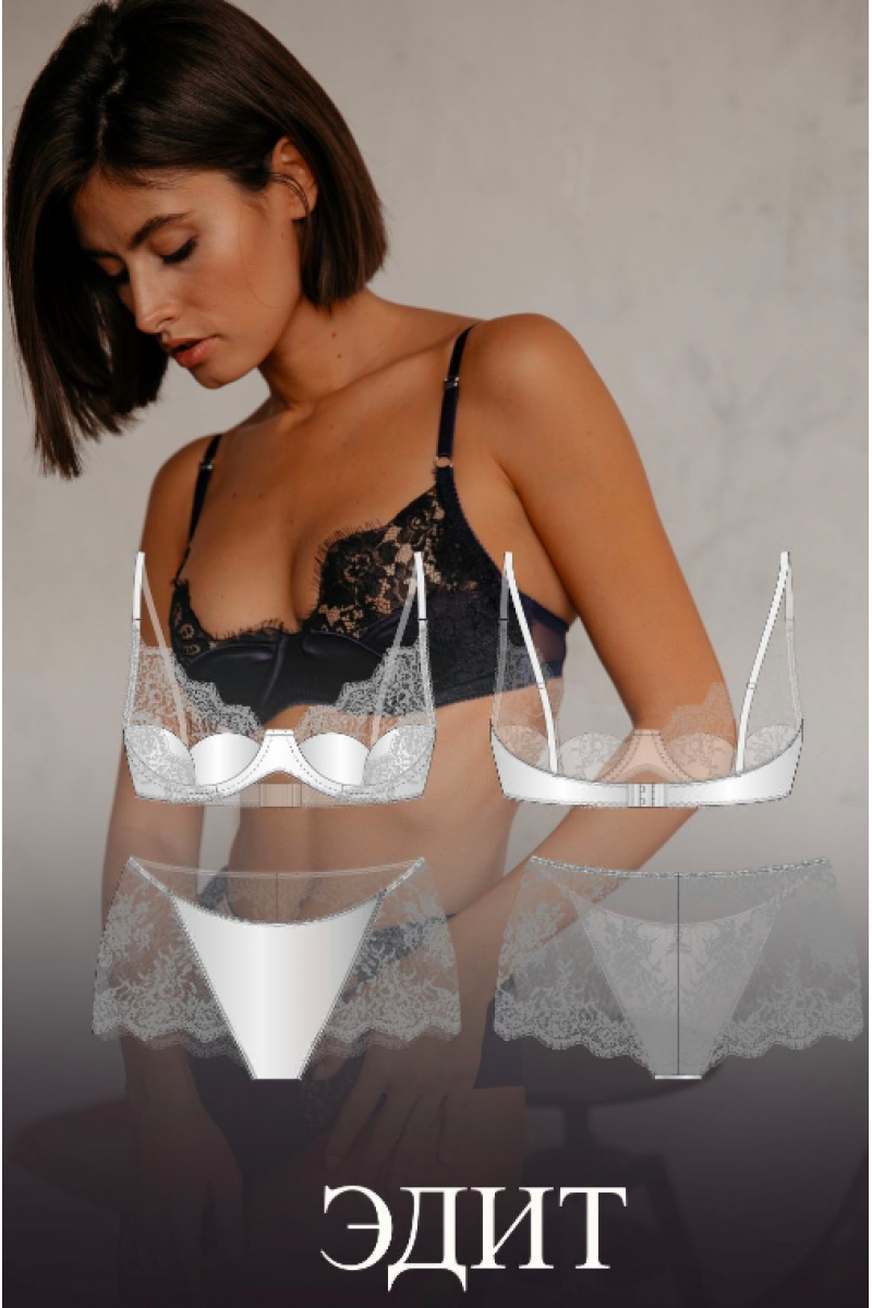 Бюстгальтер «Эдит» - многослойная чашка из трех слоев. В основе чашка из эластичного кружева с одной вытачкой, сверху – «лепестки» из бельевого поролона. Третий слой – декоративная деталь из кружева.
