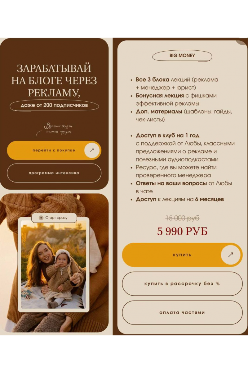 1 блок Как зарабатывать на рекламе2 блок Работа с менеджером от А до Я3 блок Как делать рекламу законно и безопасноБонусФишки маркетингаBIG MONEY