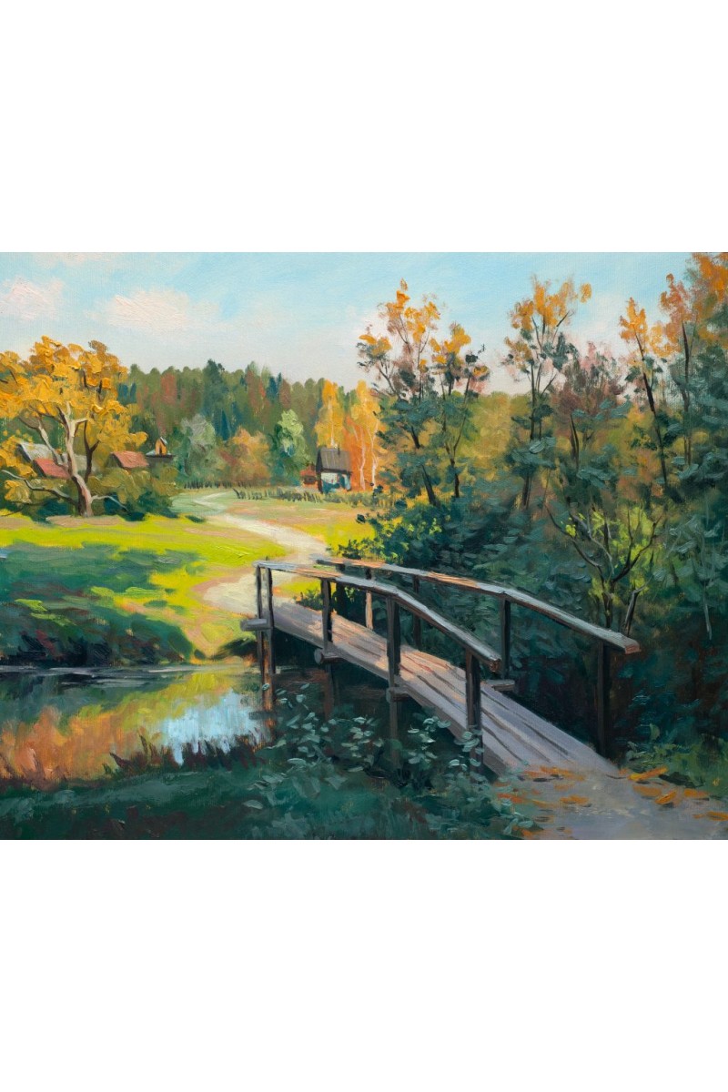 работу с ярко освещенными и теневыми объектами в рамках одной композиции при сохранении ее целостности, а также напишете воду и отражения в ней и узнаете, как работать с цветами деревенского пейзажа – оттенками травы, освещенными деревьями и деревянными объектами. Чему вы научитесь: - Писать переходный летне-осенний период; - Писать мостик и речку; - Писать деревья; - Работать с колоритом картины; - Работать со сложными оттенками; - Работать с линейной и воздушной перспективой. О мастер-классе Материал: Масло Длительность: 04:02:57