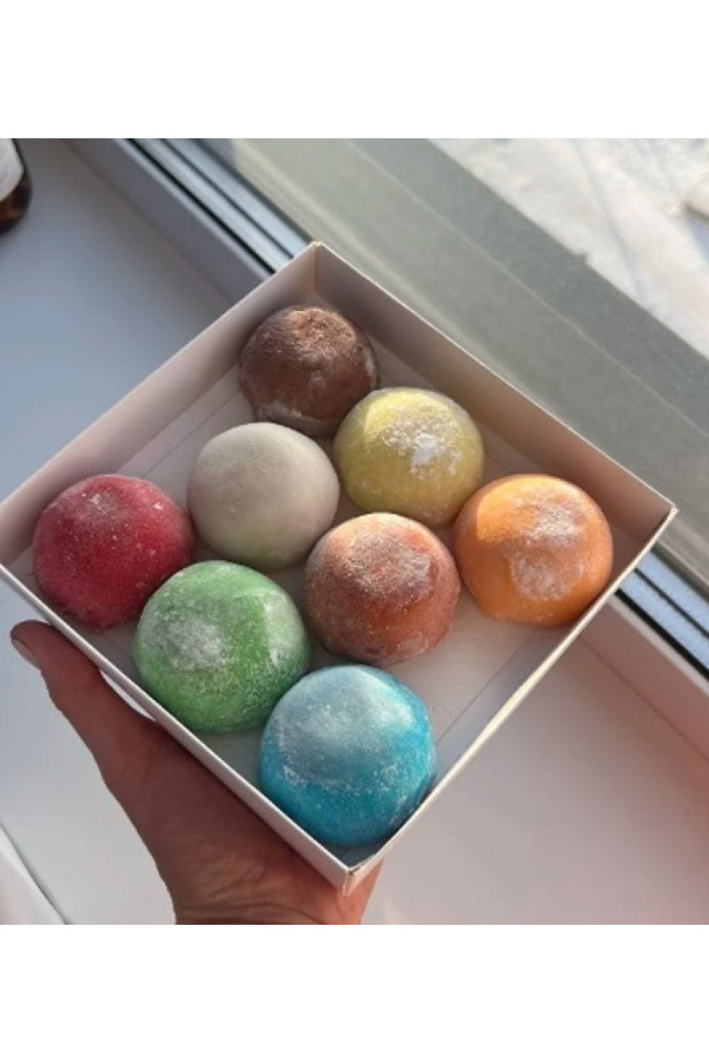 Крем на основе творожного сыра и сиропа арбуза, центр из сочного пюре дыни