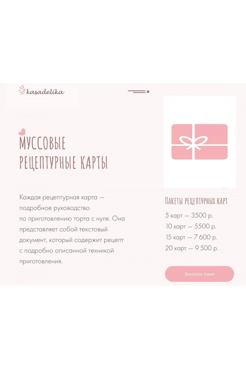 Каждая рецептурная карта — подробное руководство по приготовлению торта с нуля. Она представляет собой текстовый документ, который содержит рецепт с подробно описанной техникой приготовления.