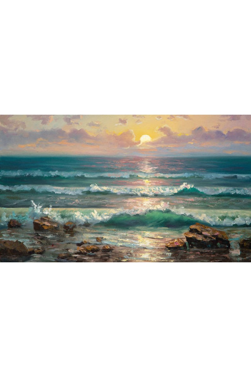 Мастер-класс по написанию волн, накатывающихся на берег и мокрых камней. Также мы разберем, как передавать облака, освещенные солнцем и световую дорожку. И многое-многое другое!