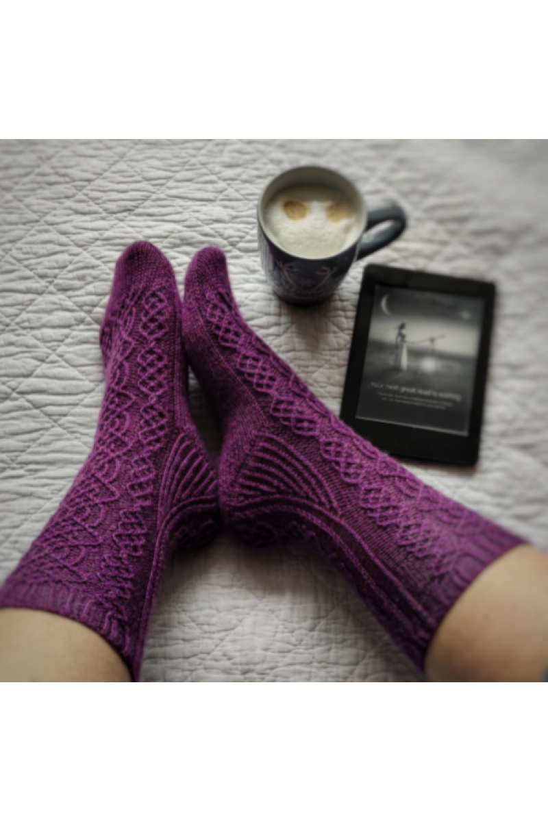 Носки с аранами, связаны от паголенка к мыску. Конструкция пятки – Стронг.