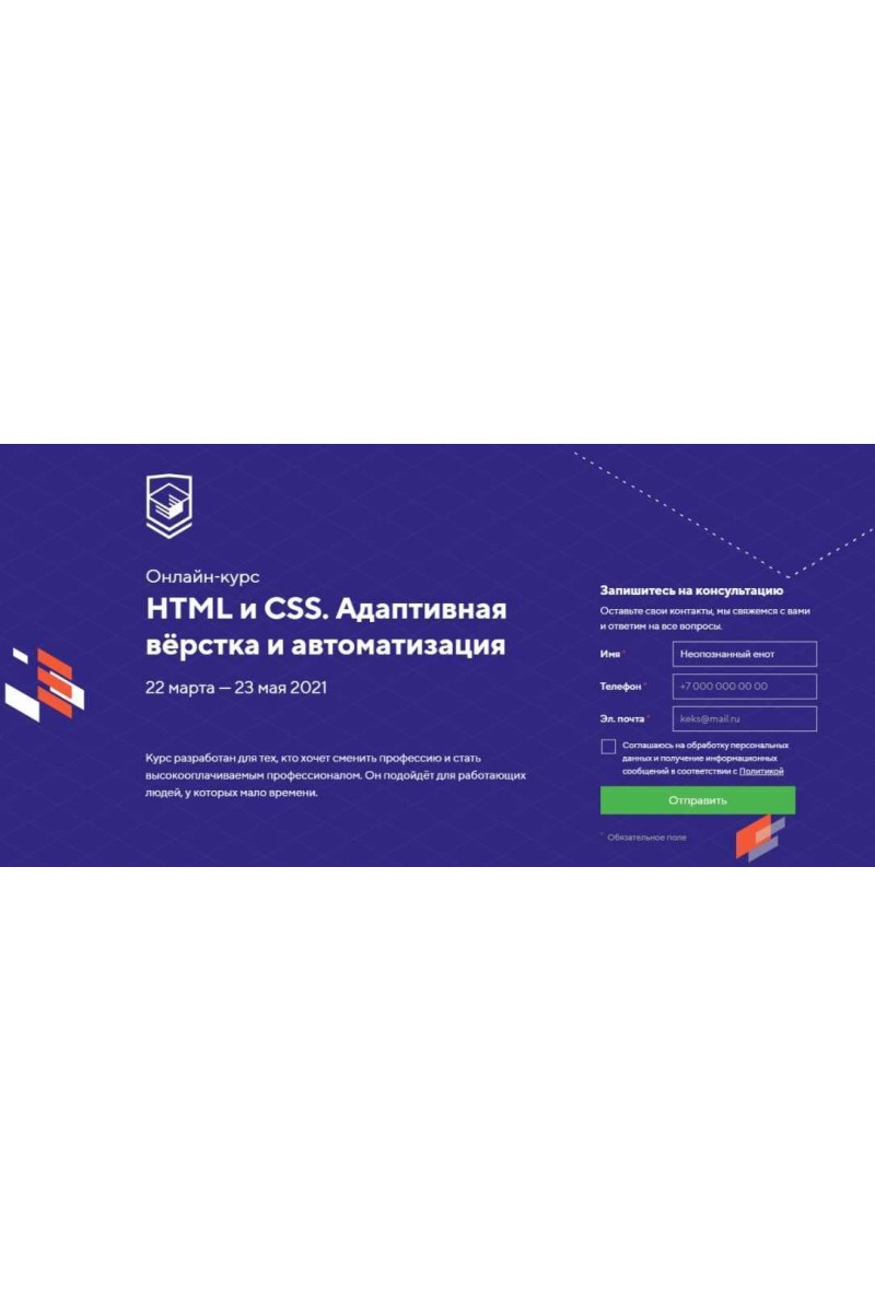 НТМL и CSS. Адаптивная вёрстка и автоматизация. март - май 2021. НТМL Academy