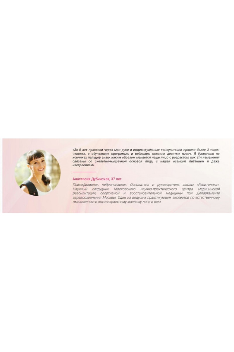 Научно-практический метод комплексного омоложения и коррекции внешности «Ревитоника».Программа вебинара: