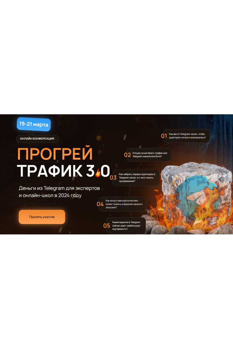 Эта конференция точно для тебя, если ты: У тебя есть база подписчиков в запрещенной соцсети, и ты хочешь подстраховаться и перевести их в Telegram Успешно запускаешь курсы в других соцсетях и хочешь масштабировать проект за счет еще одной площадки. Развиваешь блог в Telegram, но получается с трудом и хаотично. А может быть ты забросил вести канал. Ведешь блог в Telegram, но подписчики не вовлекаются, плохо подписываются или отписываются пачками. Страшно вкладывать деньги в продвижение, потому что нет уверенности, что трафик окупится. Хочешь быстро окупать трафик и получать доход за счет автоворонок в Telegram-боте, без регулярного ведения блога и танцев в сторис.