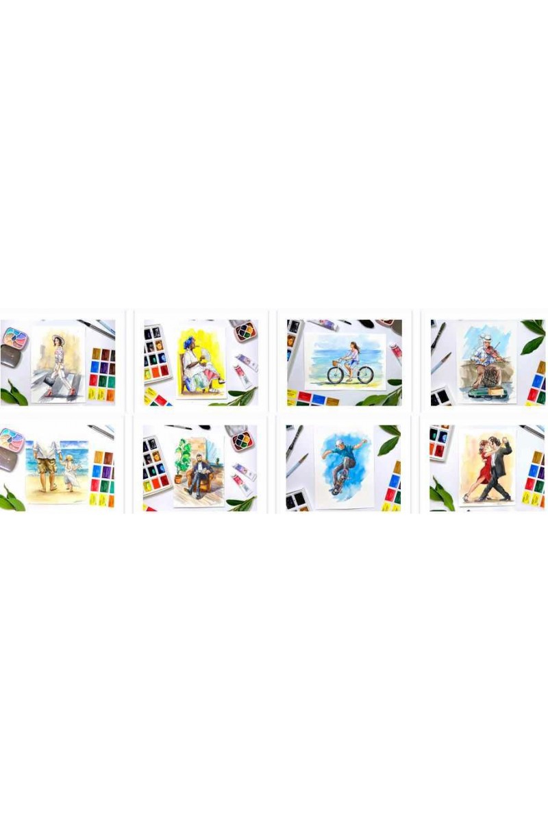 Новички познакомятся с основами рисования акварелью и человеческими пропорциями, научатся реалистично рисовать людей и смогут легко рисовать как самостоятельных персонажей, так и заселять ими, например, travel-скетчи.