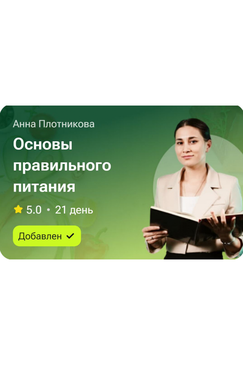 Курс Анны Плотниковой «Основы правильного питания» — это 21 занятие, на котором ты не услышишь диетических догм и мифов. Только проверенные данные, жизнеспособные подходы и внимание к реальности, в которой ты живёшь: со своими графиками, привычками, предпочтениями и отношением к еде.
