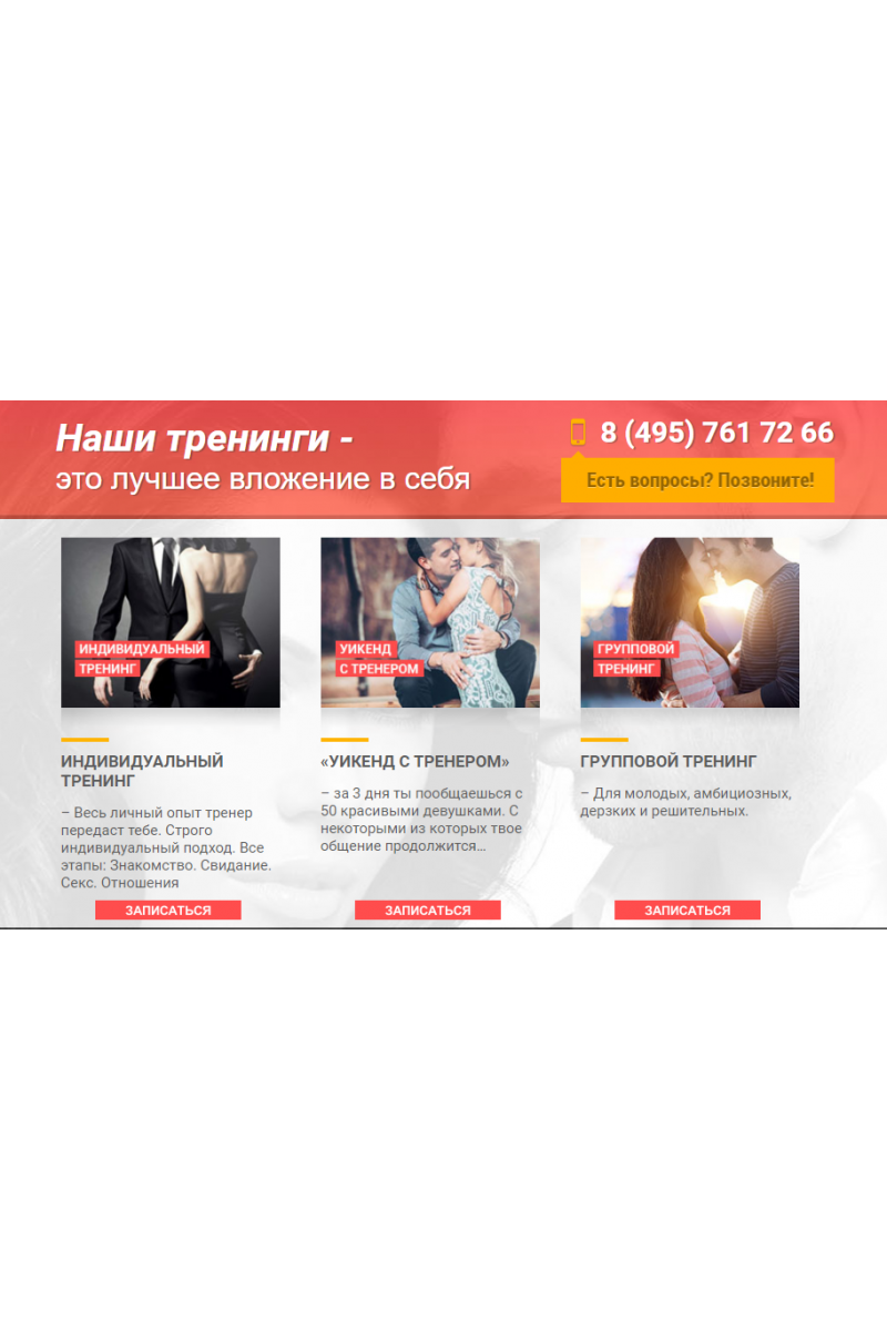 Мы занимаемся обучением мужчин эффективному общению с девушками, построению отношений.