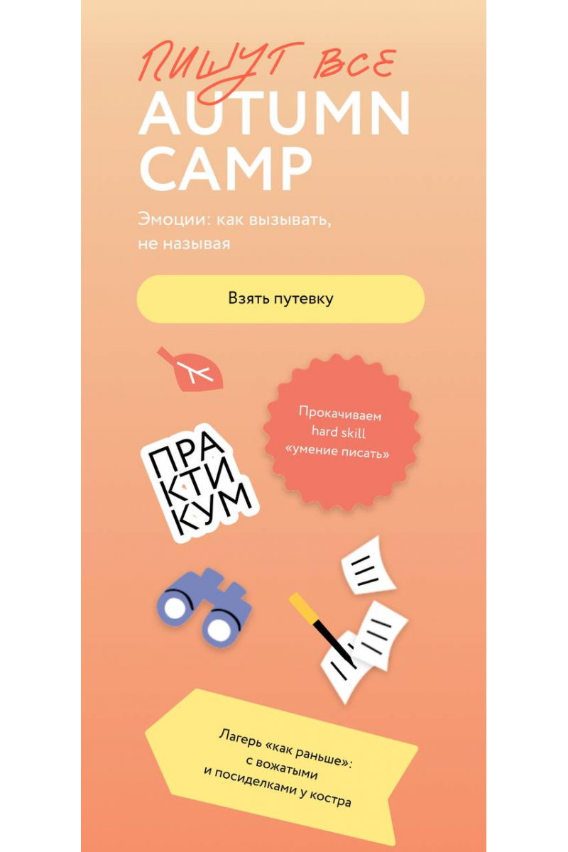 - Пишут все! Autumn camp: как вызывать эмоции, не называя. Тариф Желтый лист. Саша Степанова, МИФ