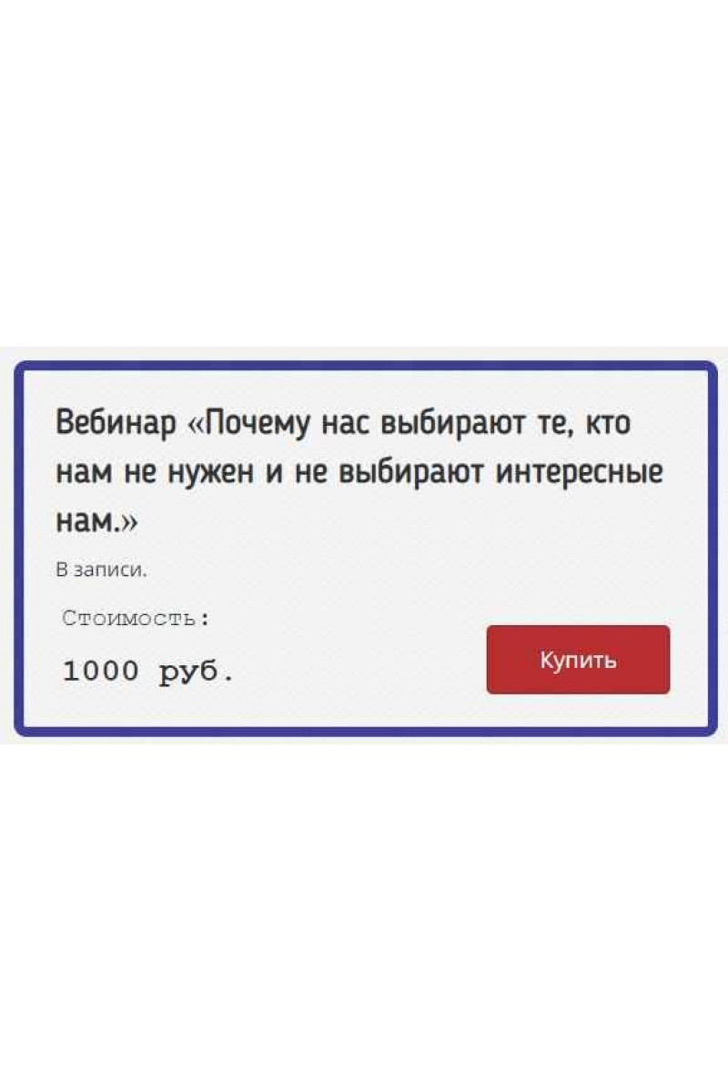 Вебинар для тех кто хочет разобраться почему нас выбирают мужчины, кто нам не нужен и не интересен. Так же Вы поймете как это исправить и соответственно сможете изменить ситуацию)).