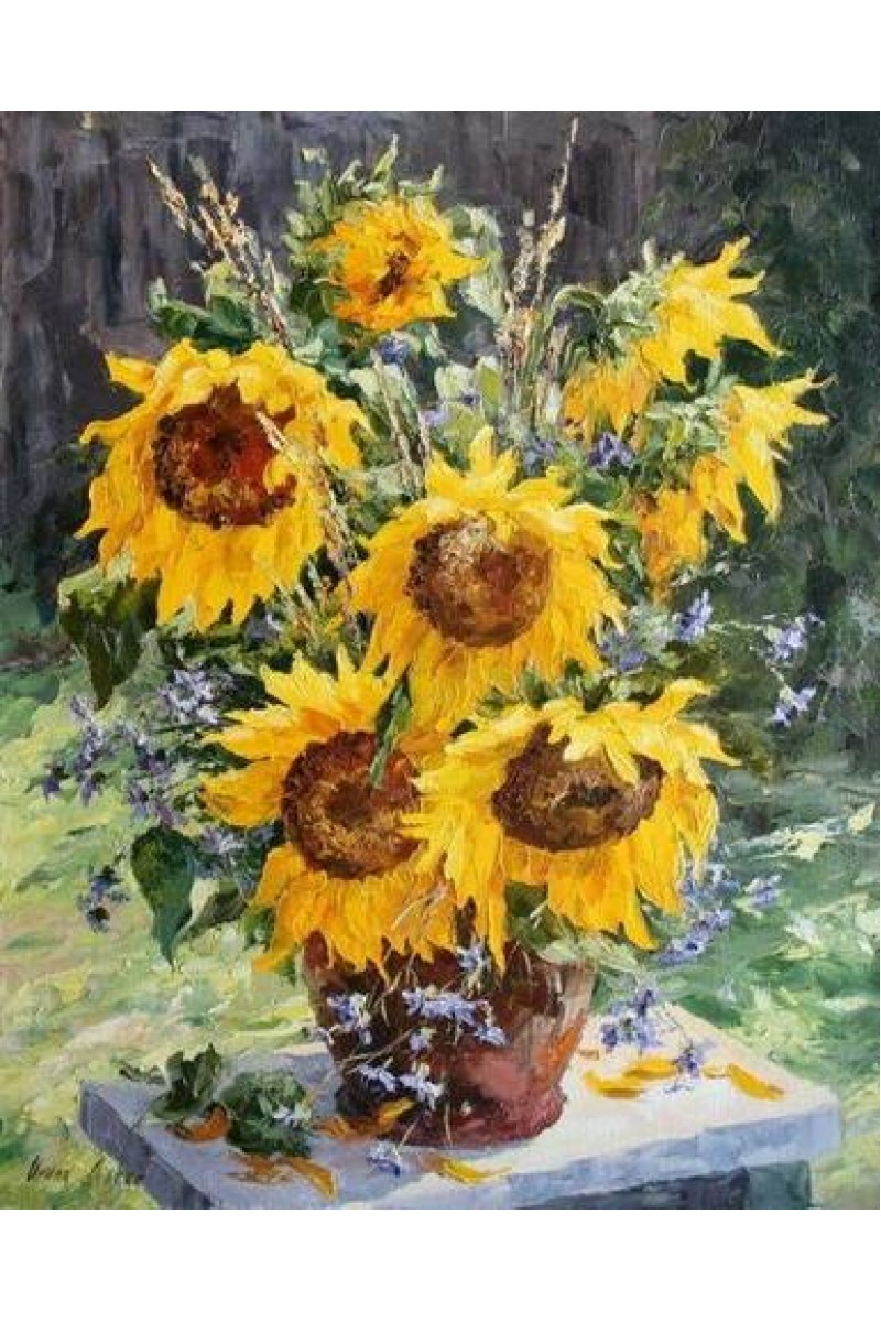 Онлайн мастер-класс по написанию подсолнухов в вазе.