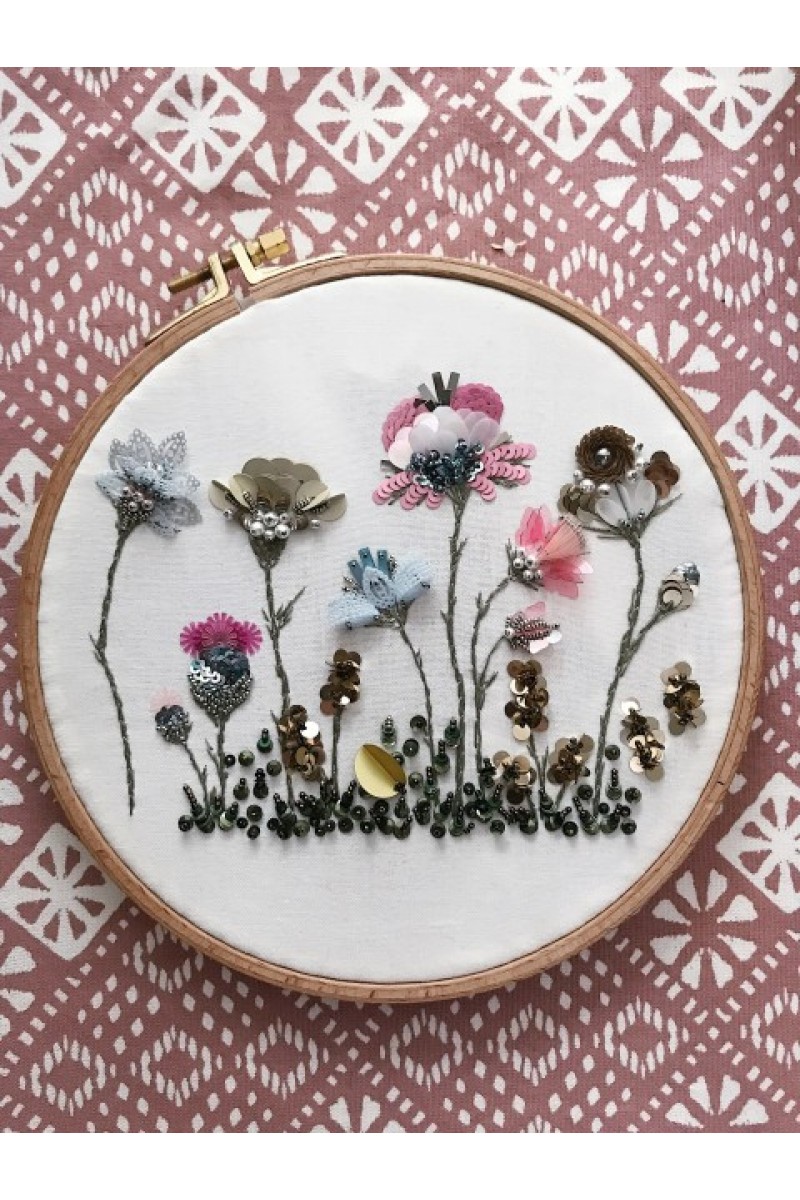 6 разных цветов + мелкие детали ( мелкие цветы, стебли, трава, листочки) с использованием всех видов пайеток.