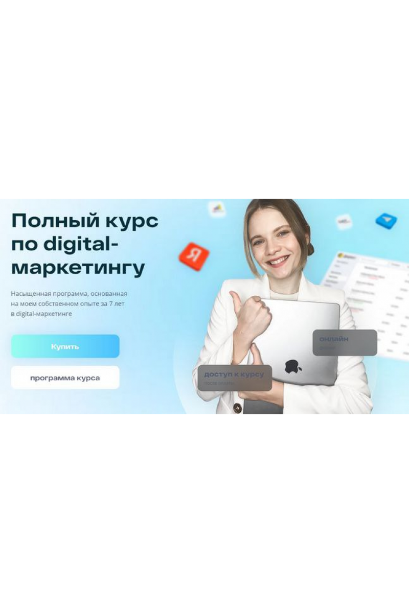 Расширите свою профессиональную компетенцию, получите глубинное понимание инструментов и мой опыт. Этот курс - ваш новый этап карьеры в Digital-маркетинге.