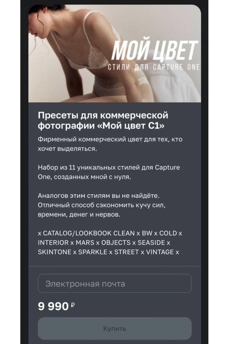 Набор из 11 уникальных стилей для Capture One, созданных мной с нуля.