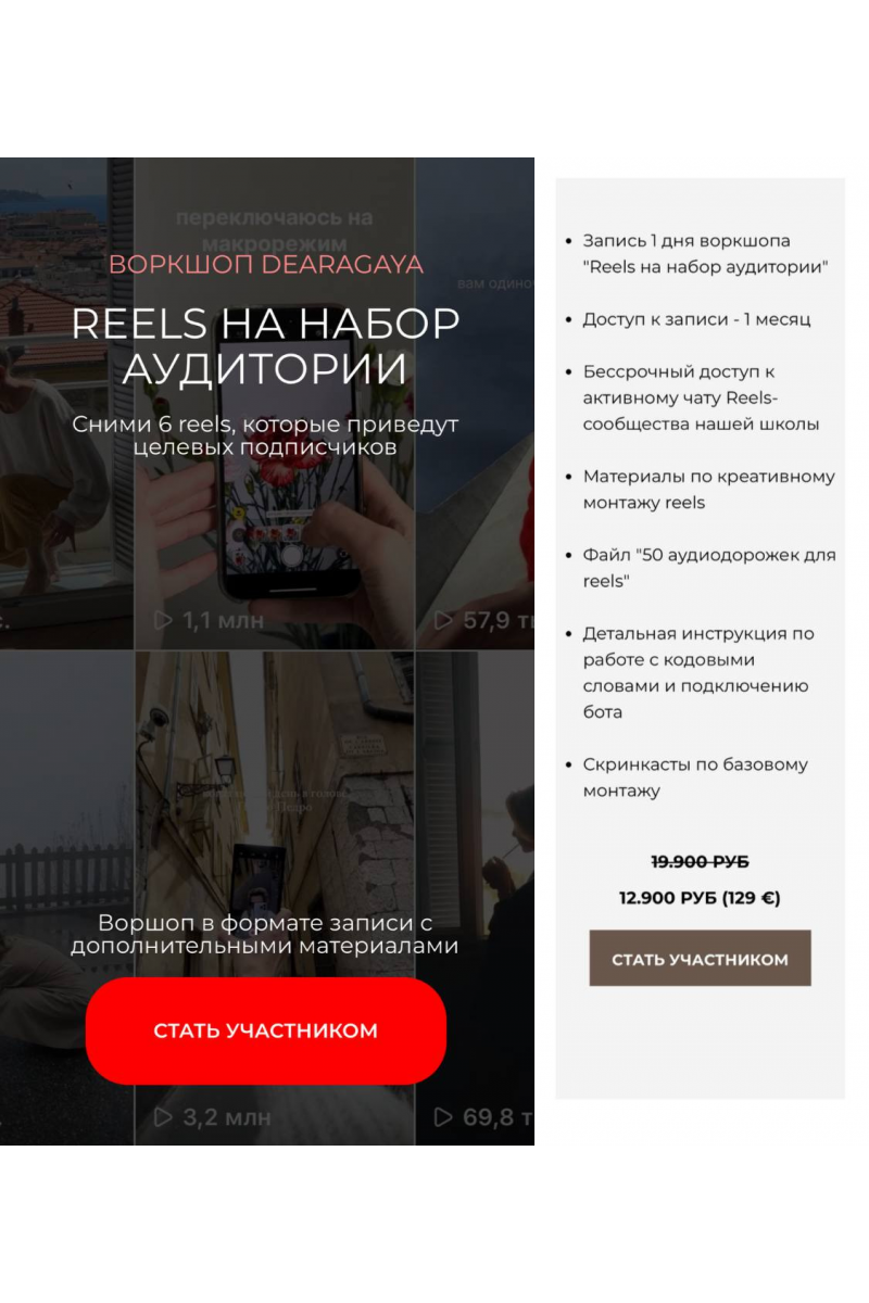 Reels на набор аудитории. Тариф ЗАПИСЬ 1 ДНЯ ВОРКШОПА + МАТЕРИАЛЫ. Любовь Ивкова, Татьяна Шибанова