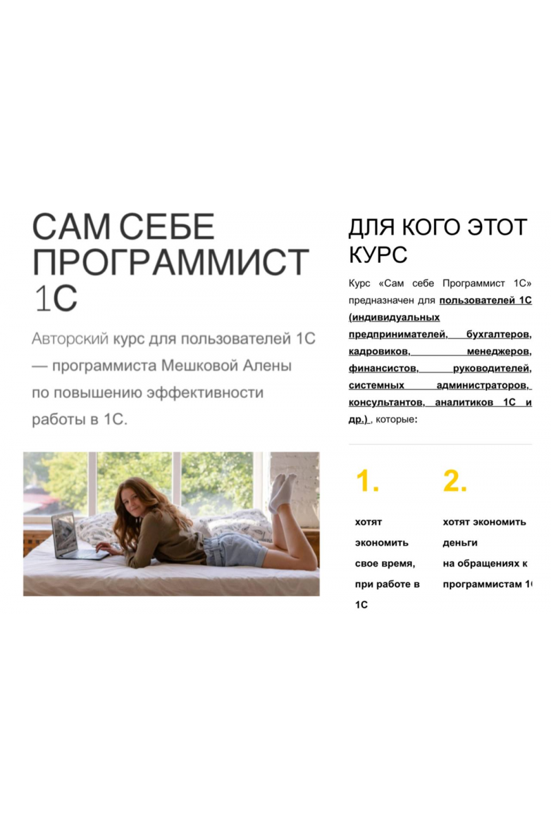 Авторский курс для пользователей 1С — программиста Мешковой Алены