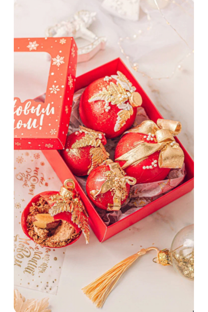 Тонкий шоколадный корпус, хрустящий слой, мягкий шоколад и жареный фундук, всё это Ферреро Роше в новом исполнении новогодней игрушки