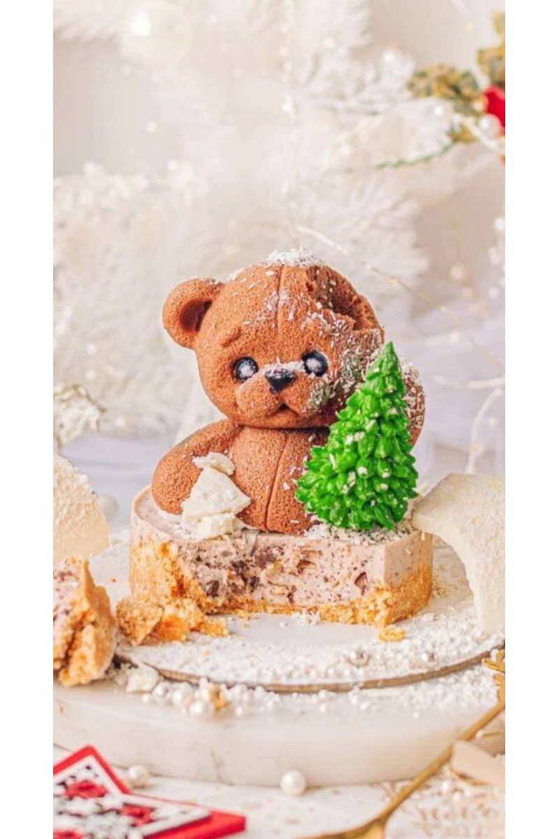 Мишка сделан из птичьего молока на основе темного шоколада. Мягкий и нежный, сверху в виде сугроба, корпус из белого бельгийского шоколада. Корпус не массивный, всего 40-50г шоколада, а внутри десерт чизкейк АПЕЛЬСИН - КОРИЦА