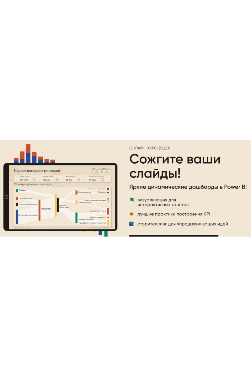 Заставите данные говорить на языке бизнеса. Научитесь выделять и грамотно визуализировать KPI. Помогать руководству в принятии решений.