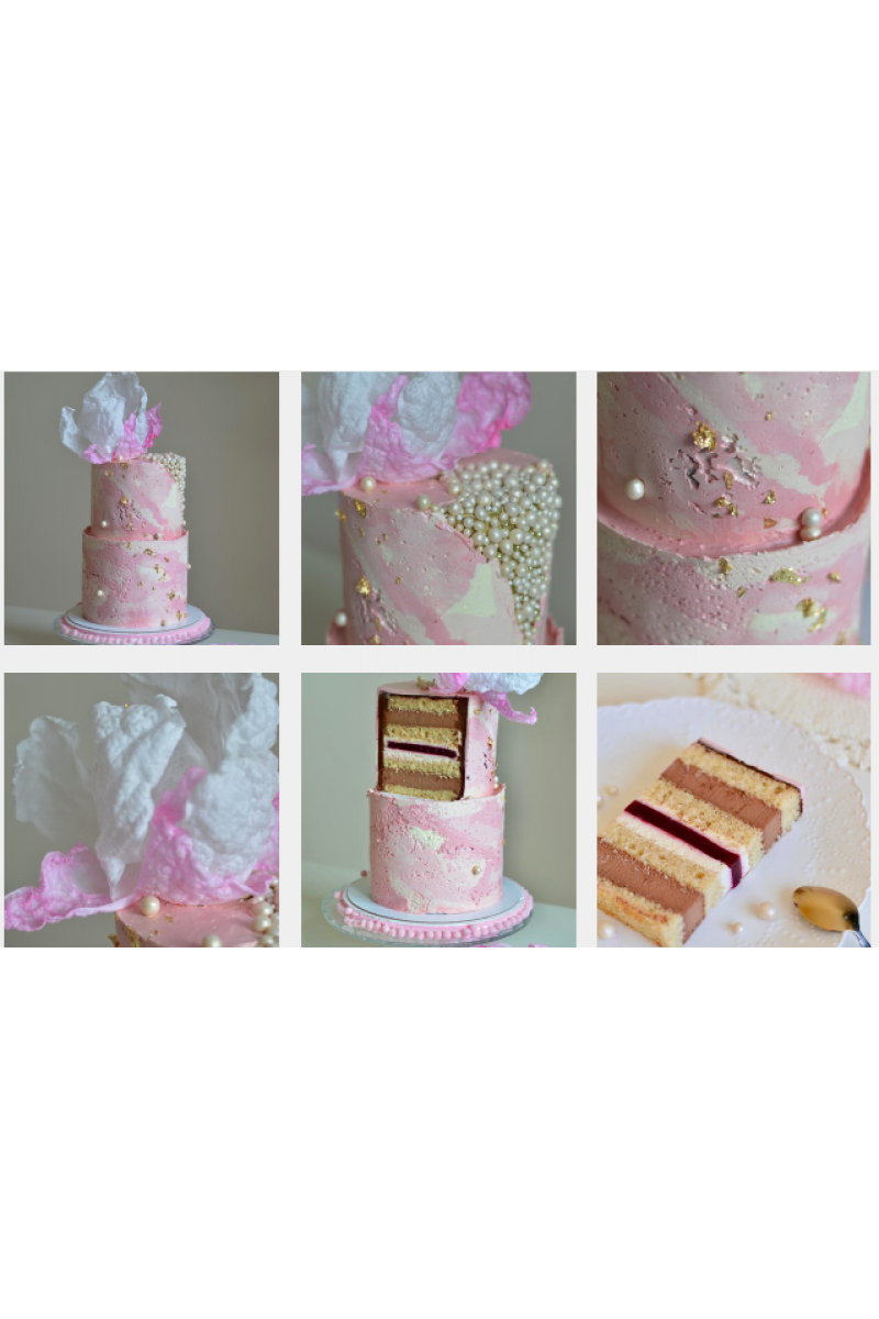 Кроме того, вы получите рецепты 2х видов финишных покрытий: шелковый ганаш из темного шоколада (стабильный крем для сложных конструкций) и масляный на швейцарской меренге (крем на все случаи жизни, бюджетный и не дает лишний вес торту).