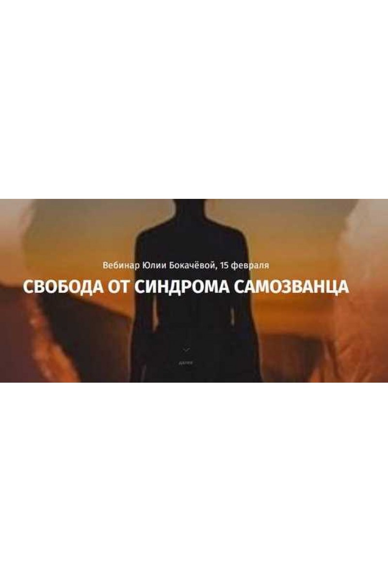 4-часовой ТЕРАПЕВТИЧЕСКИЙ вебинар «Свобода от синдрома Самозванца». «Терапевтический» означает, что мы будем работать с внутренними причинами синдрома и избавляться от него. 10 % теоретической базы и 90 % практики.