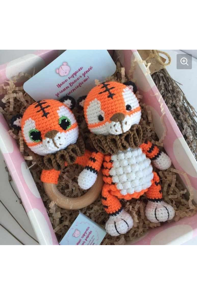 Тактильный тигрёнок и погремушка. Анна Борисова, Toys_knit_anny