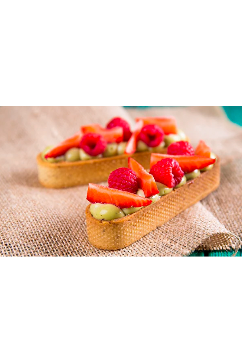Секрет необыкновенного вкуса тарта с красными ягодами в сочетании хрустящей, даже рассыпчатой, текстуры фундучного песочного теста и нежнейшего наполнения из конфи из красных ягод и обволакивающего фисташково-ванильного крема, дополненного сверху свежими ароматными ягодами.