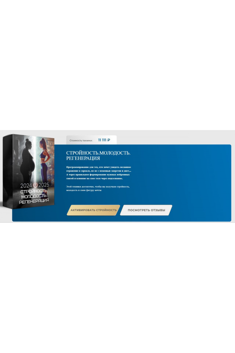 Программирование для тех, кто хочет увидеть желаемое в зеркале, но не с помощью запретов и диета, а через правильное формирование нужных нейронных связей и влияние на свое тело через подсознание. Этой техники достаточно, чтобы вы получили стройность, молодость и свою фигуру мечты.