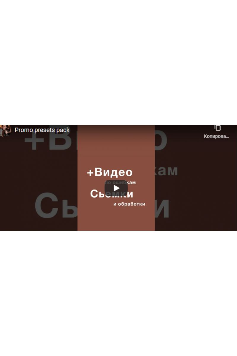 Мы не просто отправляем пресеты! При покупке "TOP PRESETS PACK" Вы получите запись полуторачасового ВЕБИНАРА по ошибкам съёмки и обработки.