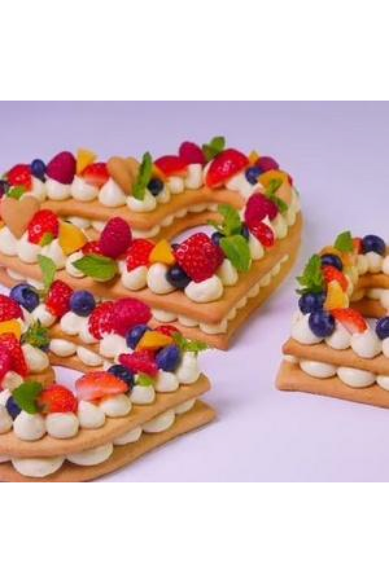 Вкуснейшее медовое тесто, потрясающий легкий ванильный крем и ягодное конфи с яркой кислинкой! А теперь представьте, что этот торт вы сможете сделать в виде любой цифры (например, сколько лет имениннику), или буквы (первая буква имени) или сердца (на день влюбленных). И поразить всех гостей таким красивым, стильным и вкусным тортом.