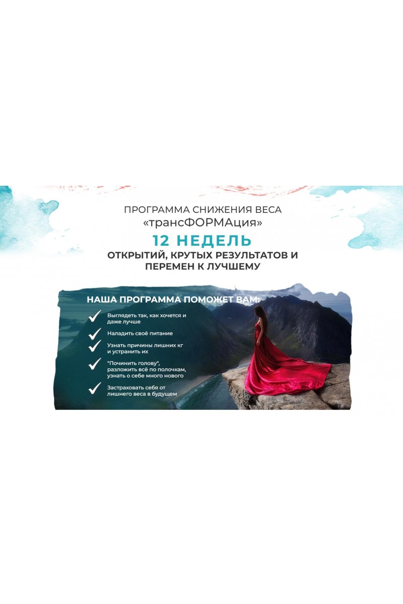 Тариф Все самаПрограмма снижения веса«трансФОРМАция»12 недельоткрытий, крутых результатов и перемен к лучшему