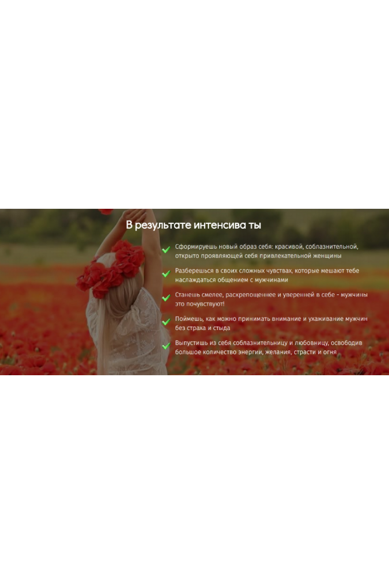 Снятие внутреннего запрета быть взрослой женщиной: флиртующей, возбуждающей, красивой, сексуальной и притягательной;