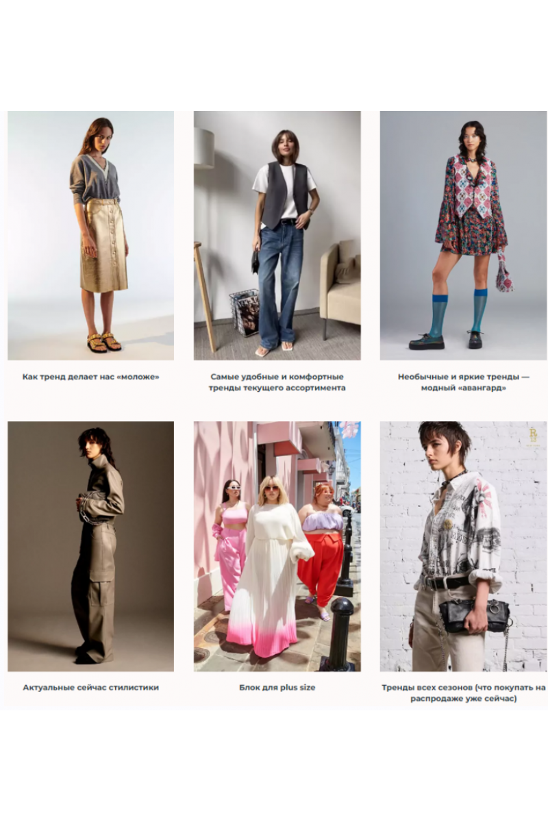 → Список модных марок и магазинов (как российских, так и не). (+ сайз сегмент обязательно будет)