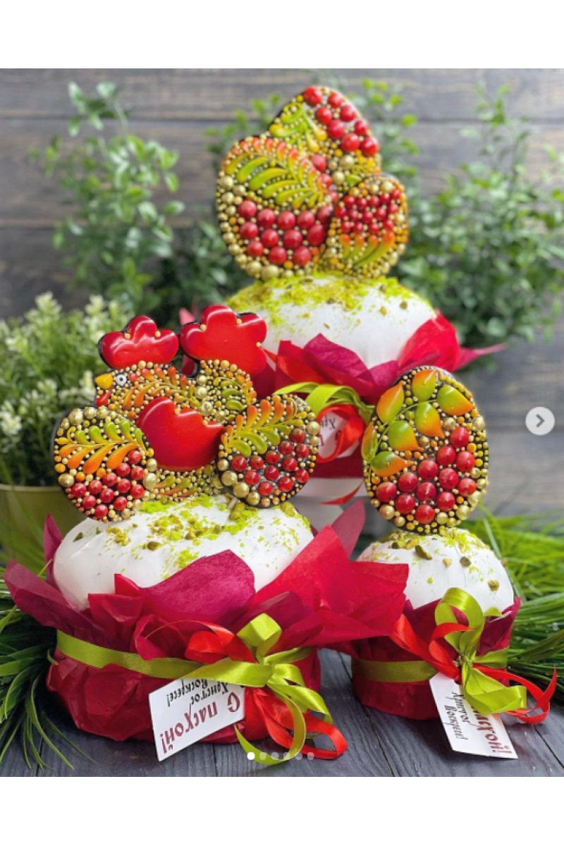 ТВОРОЖНЫЙ КУЛИЧ в декоре «Хохлома».