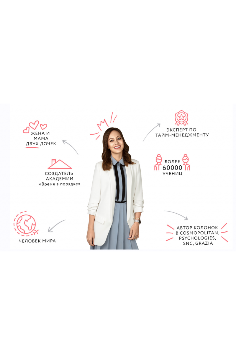 Анна Всехсвятская — создательница проектов «Время в порядке» и «Валим из офиса», блоггер, тренер по личной эффективности, жена, мама и все в одном лице. За 3 года практики запустила 12 курсов и выпустила больше 500 учениц