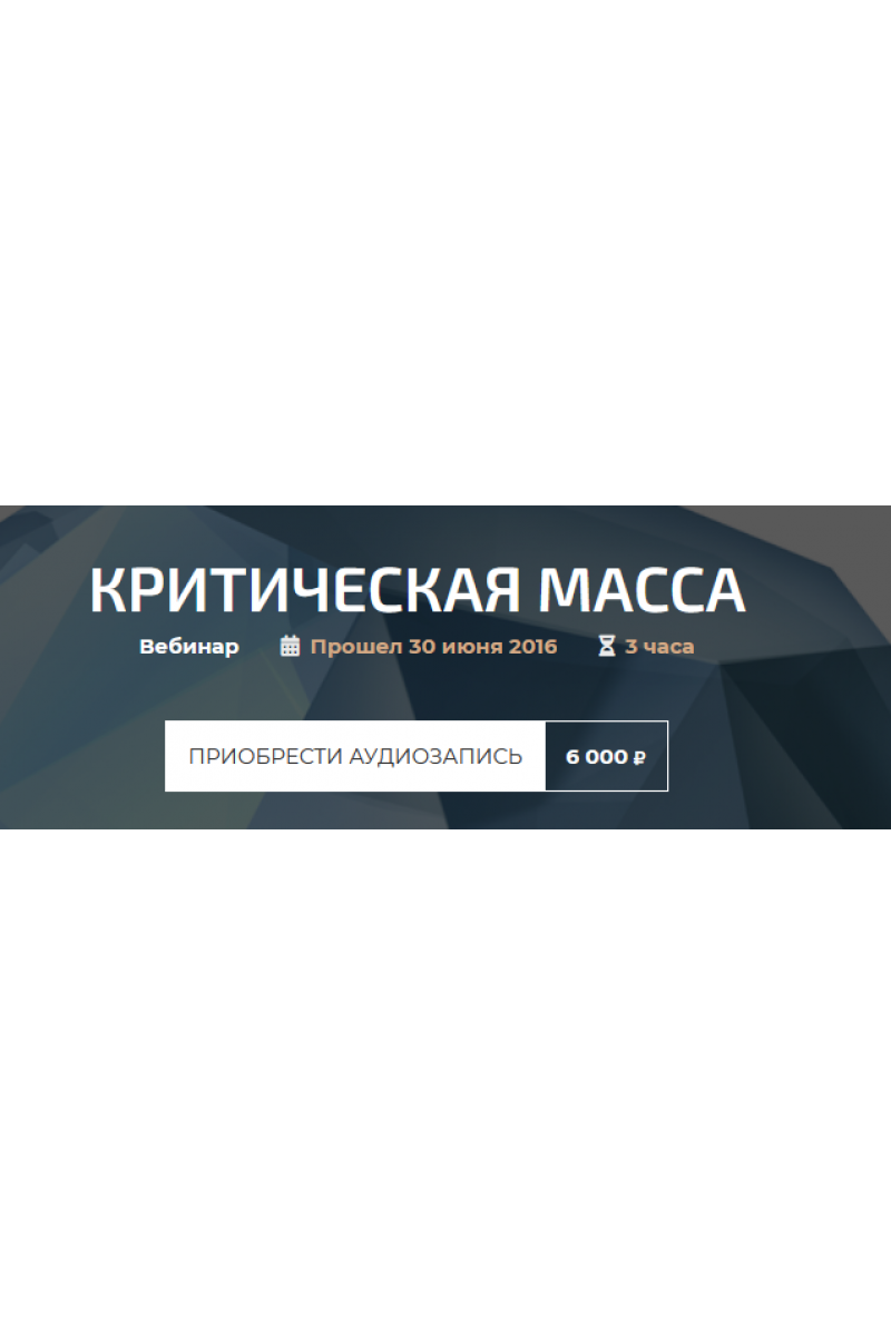 Во всех сферах нашей жизни существует своя "критическая масса" - пункт, когда события не требуют дальнейшего прикладывания усилий, а начинают развиваться по собственному сценарию, при минимальных вложениях.