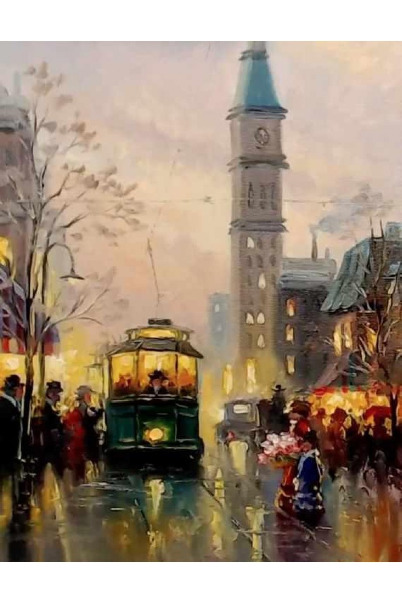 Мы передадим на холсте давно, казалось бы, утраченную атмосферу света масляных фонарей, мокрых мостовых, с отражающимися в них повозками, запряженными лошадьми и городской суеты, наполненной непередаваемой романтикой!